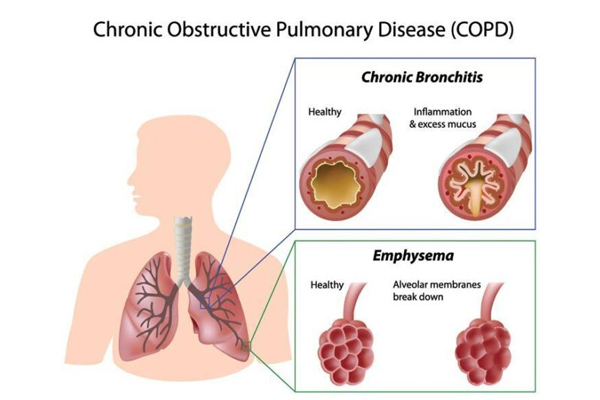 Lung disease referred to as COPD generally includes chronic bronchitis and emphysema..